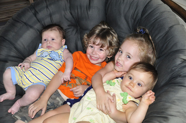 I'm behind on blogging because we have been so busy! This happens to be one story I want to remember. This happened on Memorial Day (fitting). We have built onto our deck and screened in a porch and have been working on getting everything painted which has definitely been a job! Monday we were so blessed with our wonderful family helping us. Outside painting it was me, Kelly, Larry, Lydia, my mama, and Suzy. Inside, Cohen and Brock were playing and I had just put Kate in her swing so she would take a nap. I'm not sure how long she slept, but I know it wasn't long. Brock came out on the porch to tell me Kate had a dirty diaper. We all joked to him that he needed to change it and now would be a great time to learn how. We did laugh and Lydia even shouted she was kidding with him as he was going back into the house. I was finishing my paint spot then going to change her. A few minutes later before I could get inside, Brock comes back out with a frustrated look and says, "Ashleigh I can't get this diaper back on." It took a minute for me to realize that he had attempted the "change". I asked him what he did, and he said "I changed her diaper, I thought you guys were serious when you told me to, and now I can't get it back on." Then I asked where she was and he said on the "pink thing" which is her changing pad. I took off running because I was afraid she would fall off! When I got to her room there she sat on her changing table and was clean! She did start to pee right when I walked in which made a mess but Brock had changed her dirty diaper, threw it away and wiped her clean all by himself...he is 9 and is a boy! This is something most guys have no desire to do much less a young one! All he was having trouble with was the new diaper. It really amazed me because not only did he change her, but he had to get her out of her swing, back to her room, and up on the changing table. I wish so bad I could have been a fly on the wall...and you know I wish I had a picture or video to share, but this is all I got and its after the fun was over :) I love it!