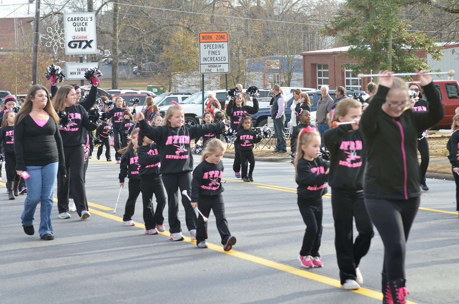 Sunday was the Lavonia Christmas parade and Cohen was in it with her Baton/dance studio. She was real excited about the parade and even asked if they would be wearing their costumes, but I had to remind her that in the parade they wore their dance sweatshirts. The exciting part was that this year she would be marching and twirling because she was 5. Last year she rode in the truck and loved it and was a little disappointed that she wouldn't get to throw out candy but she handled it ok. She did ask me several times if I thought she would be able to walk that long ways and I assured her it wasn't as long as it looked but I was a little worried about her tiring out. She did great though! We were towards the end of the route and when she got to us we yelled her name and waved and she gave us a quick (wide-eyed) wave and then was back to concentrating hard on her twirling routine and keeping up. We got a kick out of that. She was definitely "in the zone". We pulled her out a little past where we stood and she got to watch the end of the parade and join in the candy collecting. She liked that and her only complaint was that her wrist was tired. I bet so!