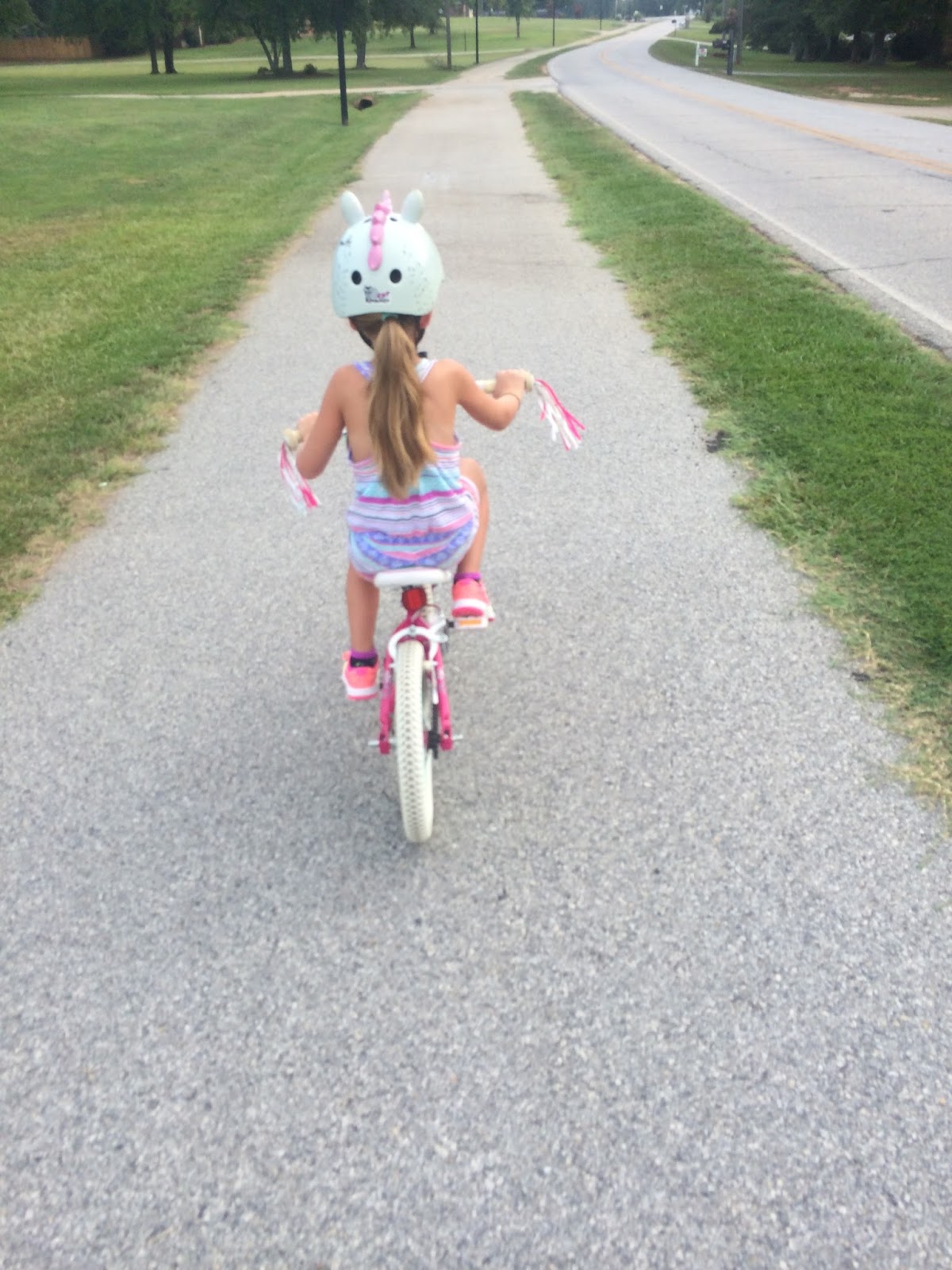 On a little side note, Cohen has mastered riding her bike with no training wheels. Last Sunday she decided she wanted to go with me when I ran. I was hesitant because I run in town and she would not only have to ride the entire 3 miles, but she would have to be able to ride through town and cross streets. She was up for it and I have to say, this girl did great! She had no trouble whatsoever and she actually wanted to keep going! I am so proud of her. Kelly took her riding with him again on Friday at the Wellness park. She is loving it.